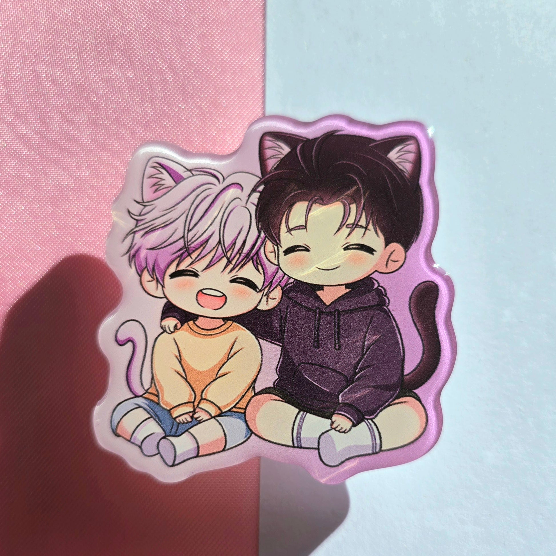 Phone grip en acrylique, avec une couche protectrice et brillante de résine époxy.