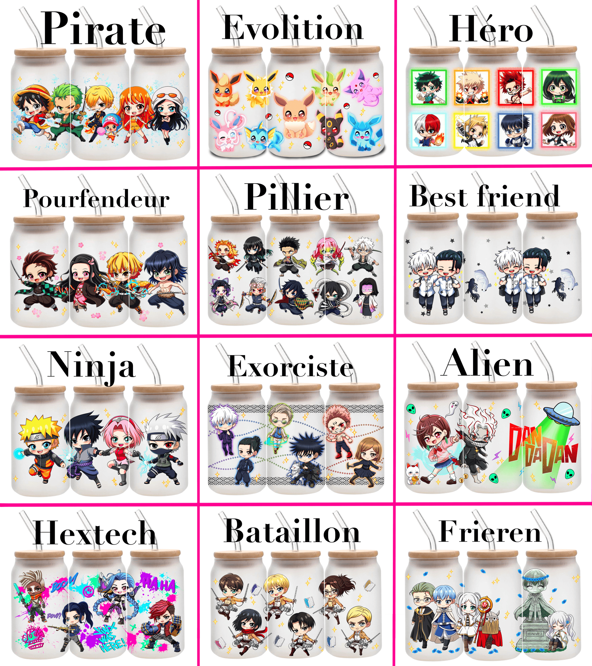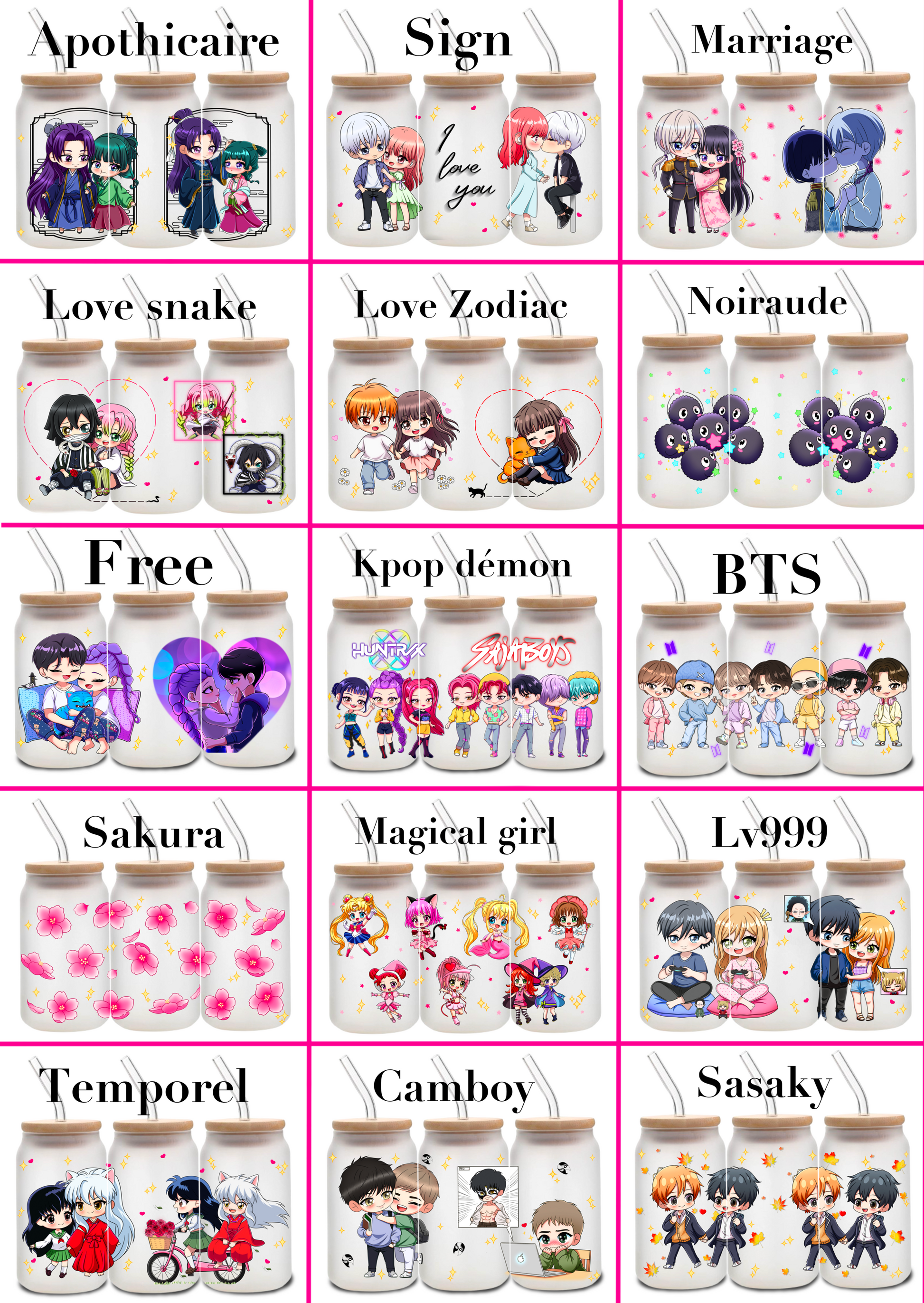 Verre transparent ou givré de 500 ml, vendues avec son couvert en bambou, une paille en verre et un goupillon